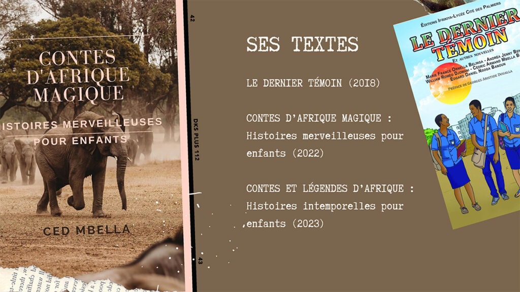 Ced Mbella ne s’arrête pas à l’écran. Il écrit aussi : ‘‘Le Dernier Témoin’‘ (2018), ‘‘Contes d’Afrique Magique’‘ (2022), ‘‘Contes et Légendes d’Afrique’‘… Autant de textes qui prolongent son désir de raconter, de transmettre, d’ouvrir des fenêtres sur l’imaginaire africain, notamment aux plus jeunes.